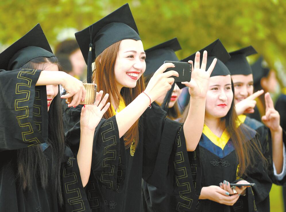 5月27日,塔里木大學幾名即將畢業的大學生在校園里合影留念,當天學校組織畢業生拍攝畢業照。素有“沙漠學府”之稱的塔里木大學創建于1958年,學校即將迎來建校60周年。這所大學自建校以來已為國家培養輸送畢業生6萬余名,其中85%的學生在新疆就業、68%植根南疆,內地生源有62%以上留疆工作。兵團日報記者 王志清 攝影報道