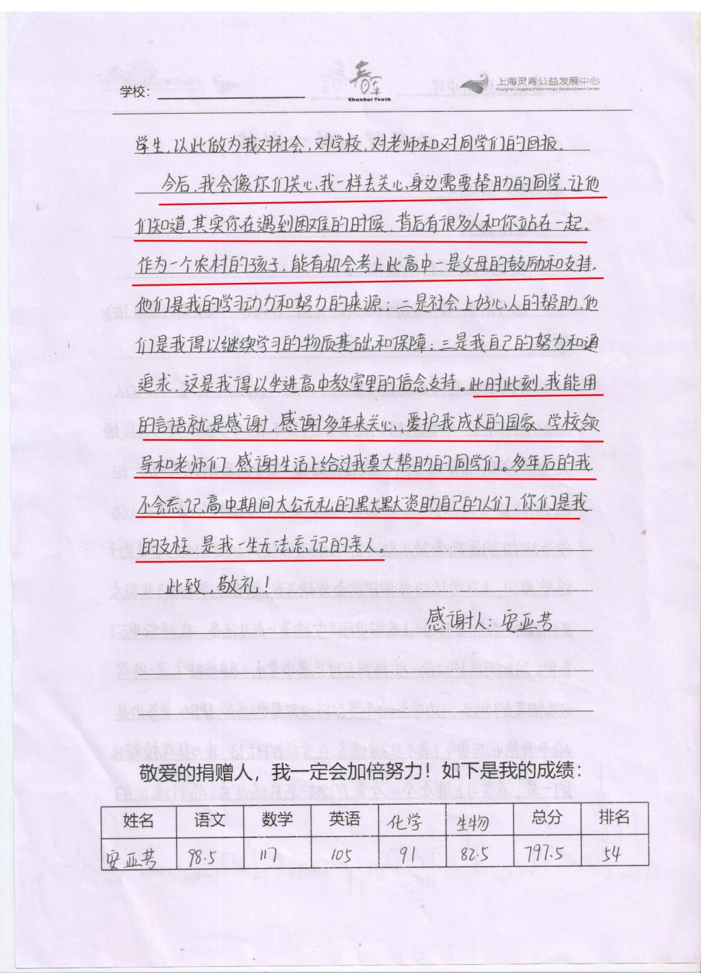 “我會繼續把這份愛傳遞下去,有一份熱,發一份光,但愿所有孩子能如愿求學,完成人生理想,做頂天立地的人。”