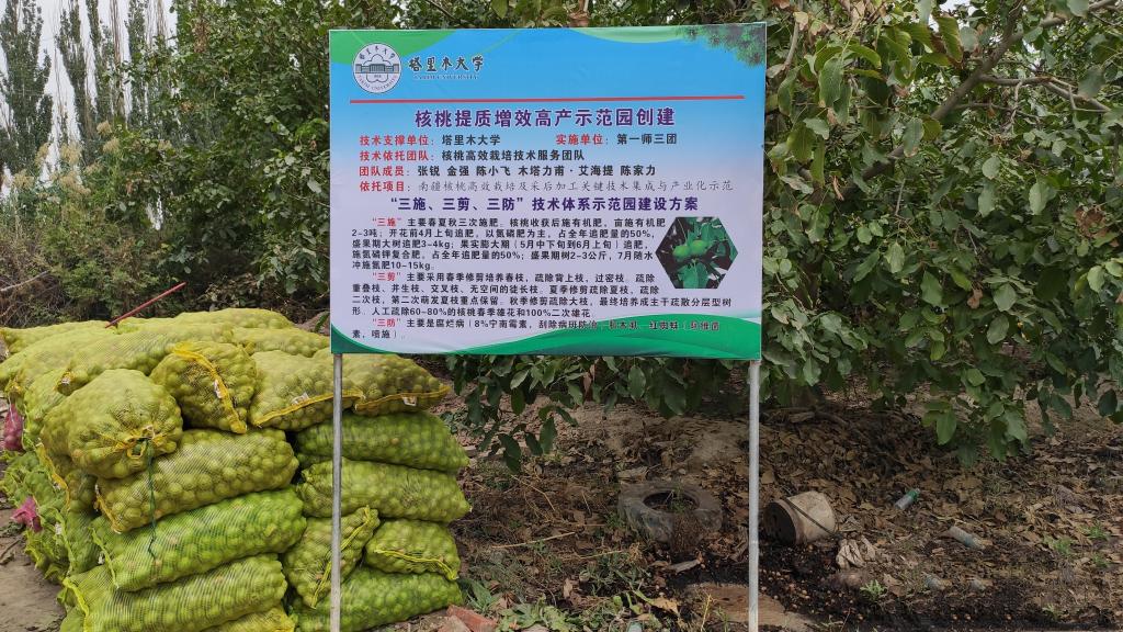 9月6日,塔里木大學(xué)核桃高效栽培技術(shù)服務(wù)團(tuán)隊(duì)張銳教授,帶領(lǐng)團(tuán)隊(duì)成員陳小飛、金強(qiáng)及研究生,來(lái)到第一師三團(tuán)開(kāi)展核桃提質(zhì)增效示范園創(chuàng)建和核桃采收期技術(shù)服務(wù)。