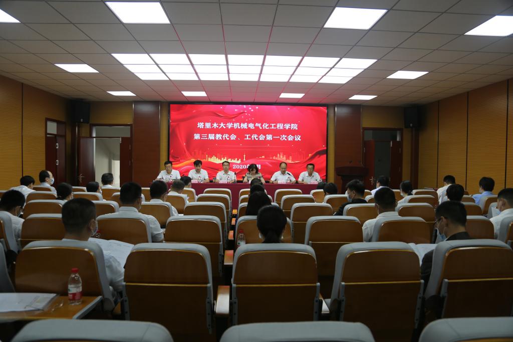 7月4日上午,在鏗鏘有力的國歌聲中機械電氣化工程學院第三屆“教代會”暨第三屆“工代會”第一次全體會議順利召開,特邀兵團工會副主席周嶺,學校黨委辦公室、校長辦公室主任鄭文軒,機電院黨委副書記、院長王旭峰,黨委副書記胡松林,黨委委員、副院長張宏,學院工會主席范修文出席了會議,全體正式代表參加大會。會議由胡松林主持,在工科樓318會議室舉行。