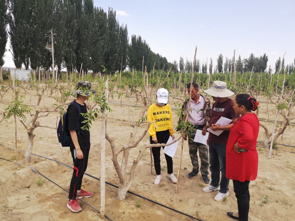 為更好地落實教育部在《學位與研究生教育發展“十三五”規劃》中提出的“專業學位研究生教育要以專業實踐為導向,以實踐能力培養為重點,以產學結合為途徑,培養在專業和專門技術上受到正規、高水平訓練的高層次人才”精神,我校園藝學科專業碩士研究生培養緊密結合南疆園藝產業,吾爾古麗、潘周昆、王鑫3名專業碩士研究生分別圍繞十四師紅棗標準園標準體系建設和皮山農場無花果產業發展設置研究選題,并于6月9日在指導教師王振磊、吳翠云的帶領下赴十四師開展實地調研,分別與十四師農業局、科技局、團場領導和恩鈺無花果基地的相關技術人員進行深入的交流和討論,并完善研究方案,促使研究結果真正解決當地產業問題。