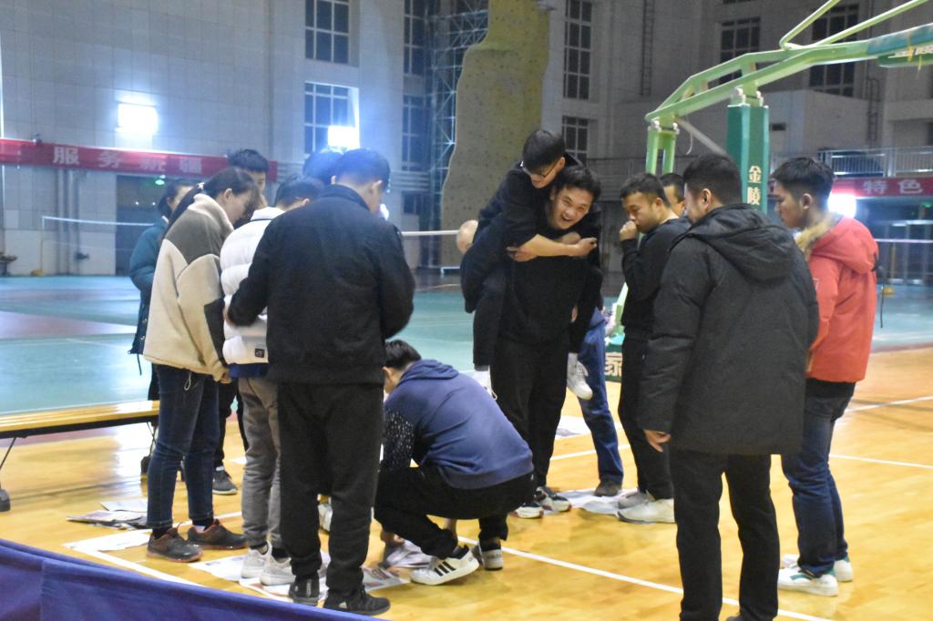 師生們共分成6個(gè)小隊(duì),共同完成趕鴨子上架、大象摸鼻、袋鼠跳跳、搬運(yùn)工等比賽。師生間相互協(xié)作、默契十足,全沉浸在一片歡樂和諧的氛圍當(dāng)中。