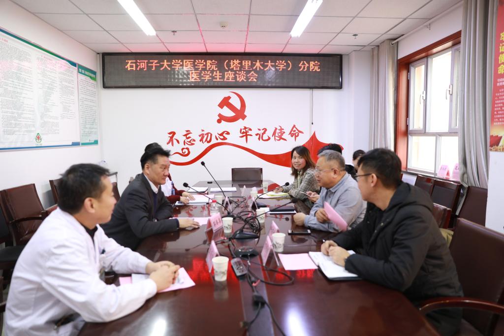 11月22日,石河子大學(xué)醫(yī)學(xué)院(塔里木大學(xué))分院黨總支副書記、院長(zhǎng)謝建新,黨總支副書記、副院長(zhǎng)胡斌、團(tuán)委負(fù)責(zé)人、教務(wù)辦相關(guān)教師,到第一師醫(yī)院開展臨床教學(xué)中期檢查工作并召開座談會(huì)。第一師醫(yī)院黨委書記茶春喜,科教科主任李忠秀,臨床醫(yī)學(xué)專2018級(jí)學(xué)生代表參加。