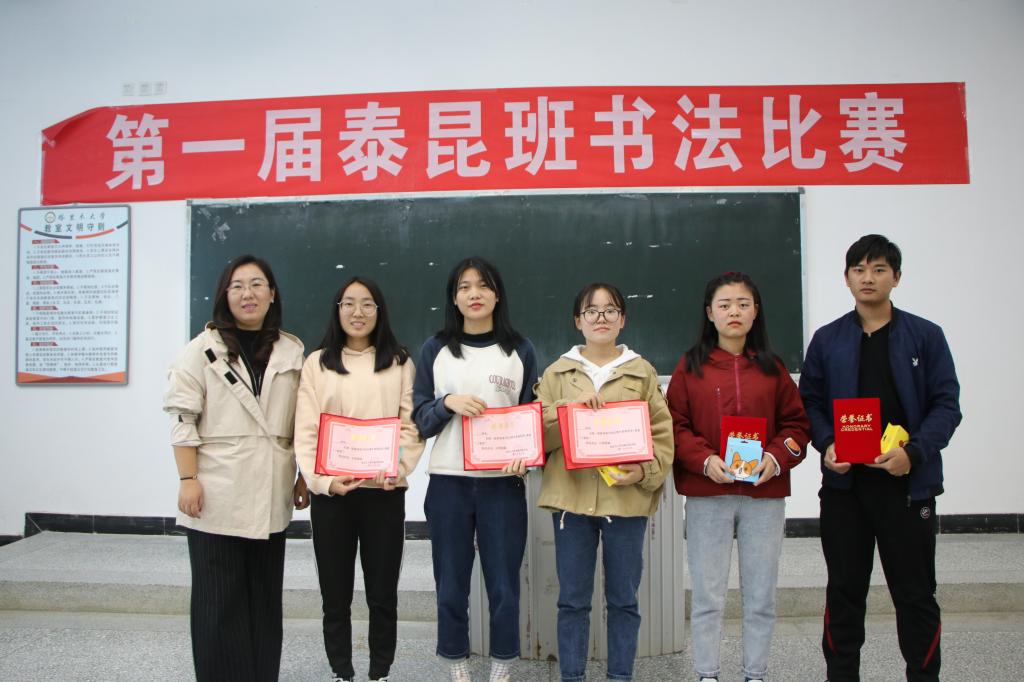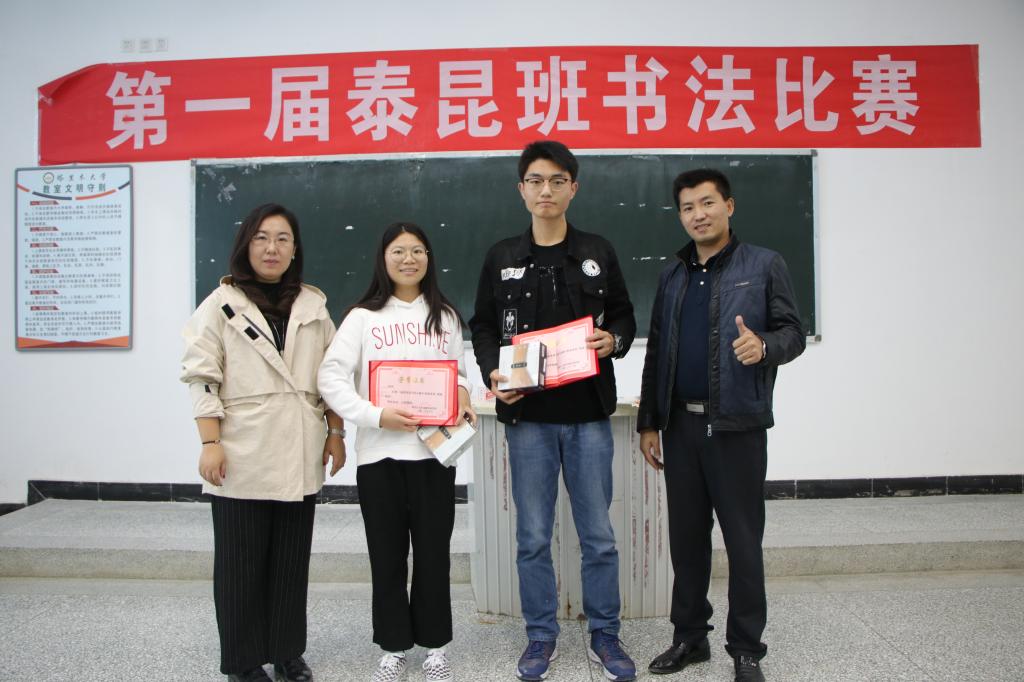 比賽中,王洪梅現場給出題目《沁園春·雪》、《滿江紅》,同學們紛紛落筆,展現出自己的水平。比賽結束,兩個班級現場互評打分,最后,由各班統票,算出了最終的獲勝者。王洪梅和馬順成為獲得名次的學生頒發獎狀、獎品。本次活動為同學們提供了相互切磋、展示自我的舞臺,提高了藝術修養和審美情操,豐富了校園文化生活。