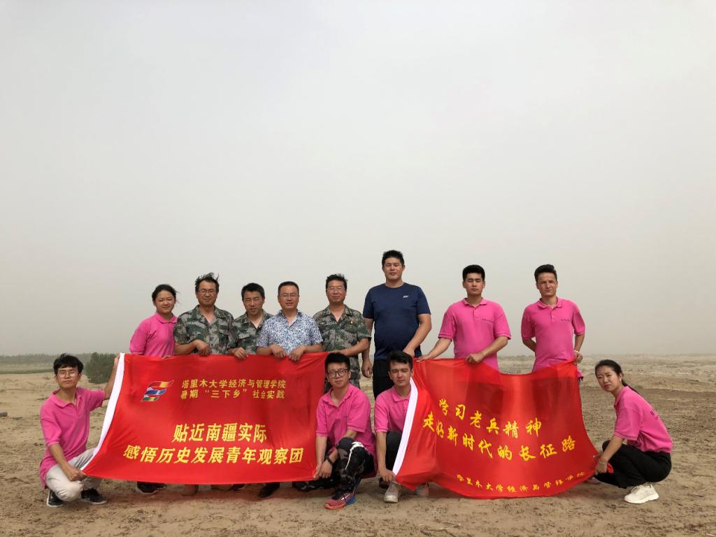 用青春腳步丈量祖國大地,用青春力量服務南疆發展。7月6日至16日,塔里木大學經濟與管理學院“貼近南疆實際,感悟歷史發展”青年觀察團在和田市、墨玉縣、224團、47團、于田縣、225團等地,開展暑期三下鄉社會實踐活動。實踐團成員在指導老師的帶領下,沿阿和公路縱穿塔克拉瑪干沙漠,來到實踐活動目的地。此次暑期三下鄉實踐活動旨在感悟南疆發展變化,體驗兵團精神、老兵精神、胡楊精神。