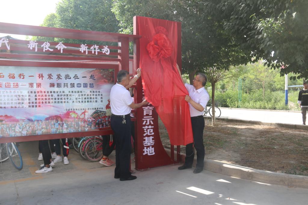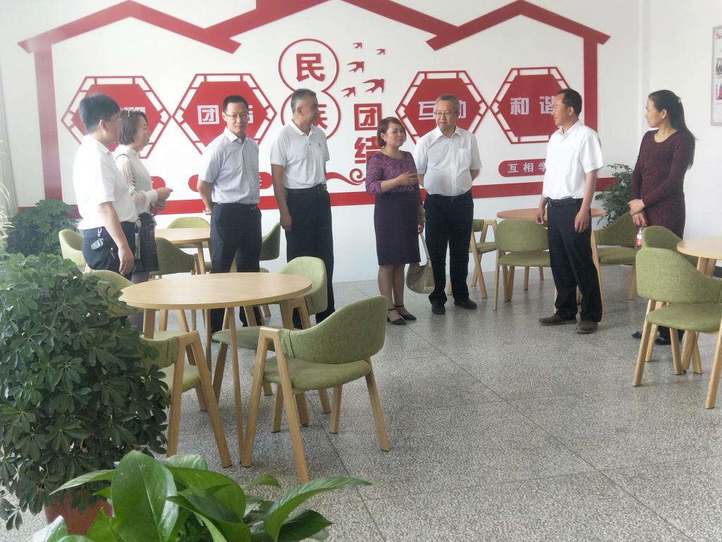 參加儀式的領(lǐng)導(dǎo)和師生一同參觀了民族團(tuán)結(jié)示范基地、尤良英工作室和學(xué)院學(xué)生繪制的“民族團(tuán)結(jié)”主題展板。