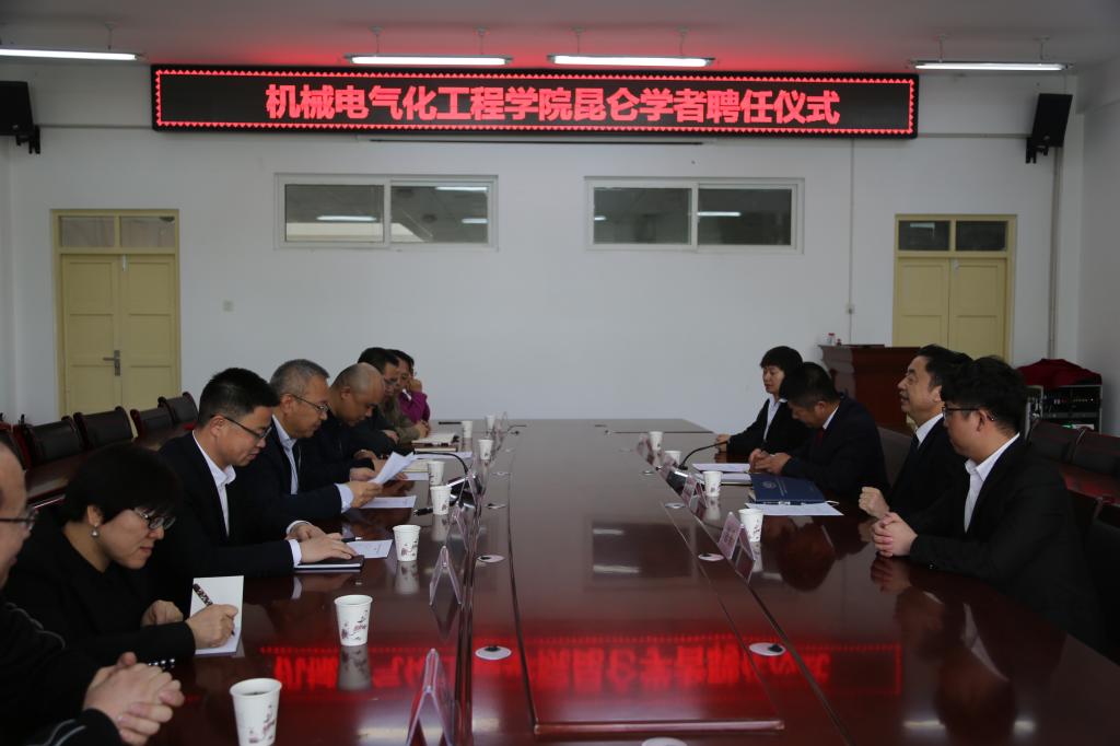 4月11日,學(xué)校“昆侖學(xué)者”聘任儀式舉行。黨委常委、副校長(zhǎng)曲義勇,張兆國(guó)教授和賈富國(guó)教授,機(jī)電院院長(zhǎng)弋曉康,人事處副處長(zhǎng)嚴(yán)兆府,機(jī)電院副院長(zhǎng)王旭峰,以及學(xué)院各系主任參加聘任儀式。儀式由弋曉康主持,在工科樓229會(huì)議室舉行。