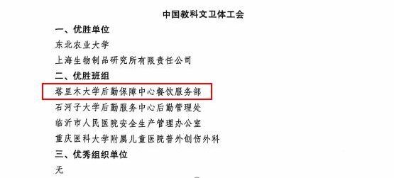 近日,中華全國總工會、應急管理部、國家衛生健康委員會聯合印發《關于表彰2022—2023年度全國“安康杯”競賽先進集體和優秀個人的決定》,我校后勤保障中心餐飲服務部獲得2022-2023年度全國“安康杯”競賽優勝班組稱號。