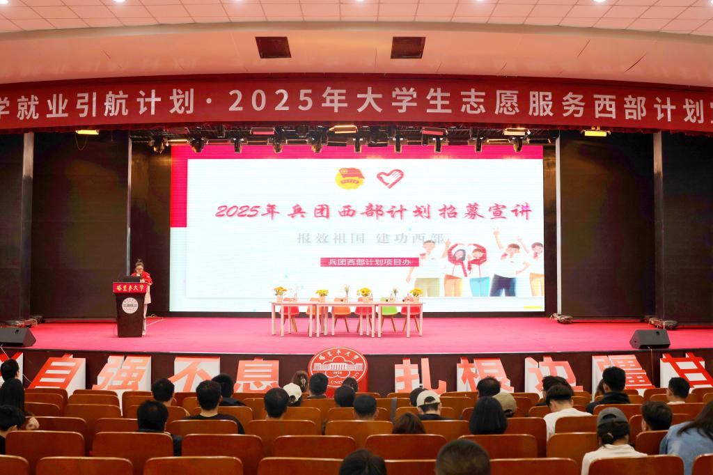 4月9日,塔里木大學(xué)就業(yè)引航計劃·2025年大學(xué)生志愿服務(wù)西部計劃宣講會在文科樓B座報告廳舉辦。各學(xué)院畢業(yè)生代表參加。