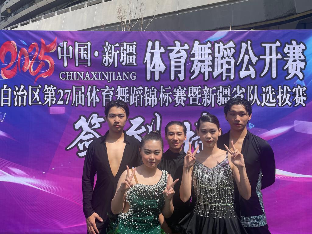 近日,中國(guó)·新疆體育舞蹈公開賽暨自治區(qū)第27屆體育舞蹈錦標(biāo)賽、新疆省隊(duì)選拔賽在烏魯木齊市奧體中心落幕。我校體育舞蹈代表隊(duì)派出5名選手參加,最終,獲得6項(xiàng)冠軍,1項(xiàng)亞軍,1項(xiàng)季軍。