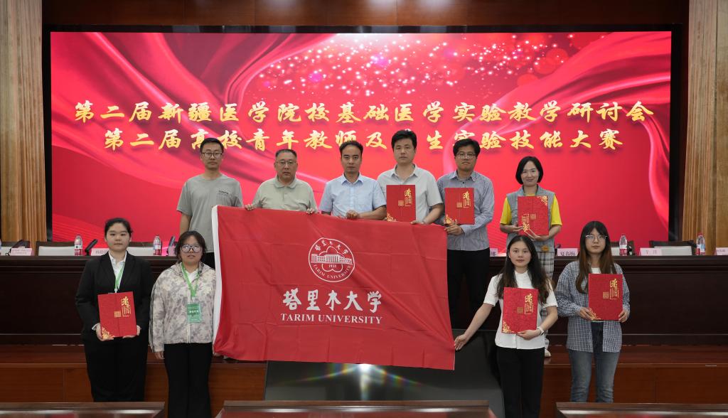 近日,第二屆新疆高校青年教師及學生基礎醫學實驗技能大賽在新疆醫科大學(雪蓮山校區)落幕。我校師生獲得一等獎1項,二等獎2項, 三等獎6項,優秀獎5項,塔里木大學醫學院獲得“最佳組織獎”。