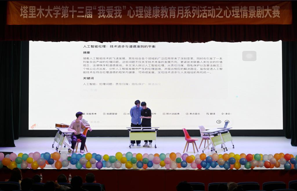 近日,塔里木大學第十三屆“我愛我”心理健康教育月系列活動之心理情景劇大賽在大學生活動中心成功舉辦。共有全校18個單位的600余名師生參與。