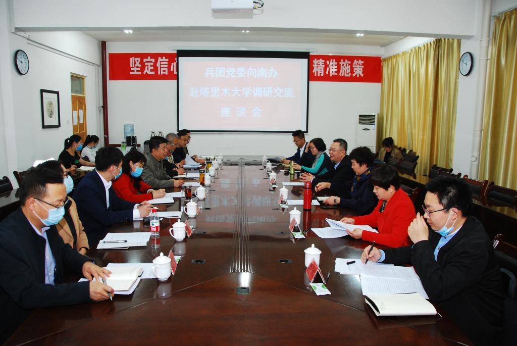 朱振軍介紹了此次調(diào)研的目的、意義和內(nèi)容,以及兵團黨委南疆辦有關(guān)工作開展情況,對塔大在兵團發(fā)展中作出的特殊貢獻、發(fā)揮的特殊作用給予充分肯定和高度評價。希望塔大堅定不移聚焦服務(wù)新疆工作總目標和兵團發(fā)展,以立德樹人為根本,以興農(nóng)強農(nóng)為己任,充分發(fā)揮人才科技智力優(yōu)勢,為推進南疆經(jīng)濟社會發(fā)展、堅決打贏脫貧攻堅戰(zhàn)、決勝全面建成小康社會發(fā)揮更大作用、作出更大貢獻。