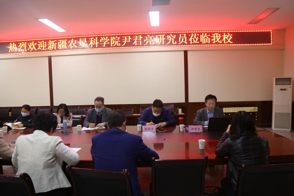 4月10日至11日,應塔里木大學動物科學學院邀請,新疆農墾科學院黨(院)辦主任尹君亮研究員和科技成果推廣處副處長段震宇來我校,開展兵團2020年新立項重點領域科技攻關計劃項目“南疆牛羊特色飼草料資源開發高效利用推廣的示范”項目執行前調研和交流工作。調研期間,尹君亮研究員結合自己多年的項目申報及管理經驗,作了題為《科技項目選題申報和實施》的學術報告,從項目選題來源、申請書撰寫、可行性研究報告的撰寫、項目的實施、結題材料組織等方面進行了深入闡述。