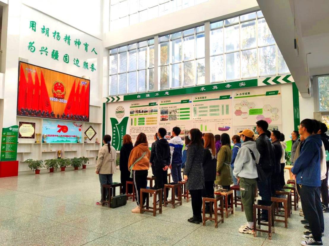 10月23日上午10:00,植物科學學院組織師生在農科樓大廳收看了紀念中國人民志愿軍抗美援朝出國作戰70周年大會的直播。
