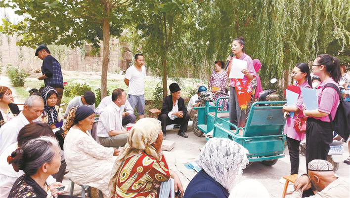 塔里木大學志愿者服務隊隊員到基層社區宣傳法律知識(資料圖片)。