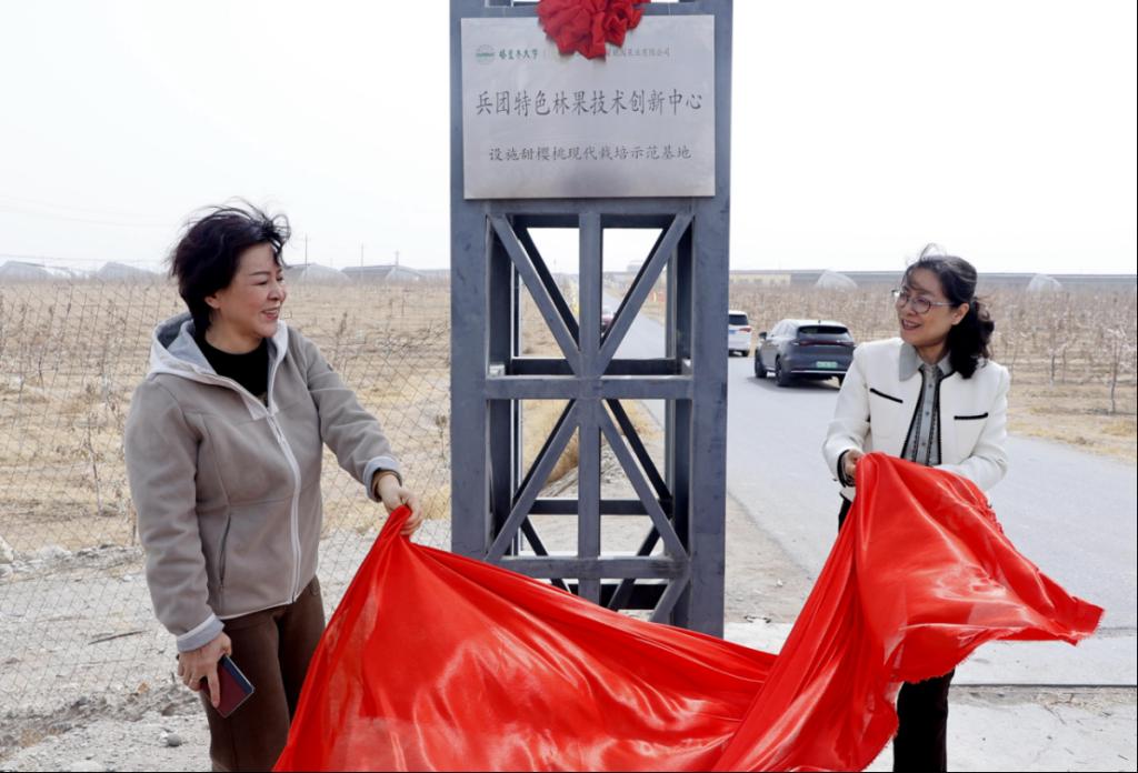 校領導來到阿克蘇冰雪蜜脆園果業有限公司考察調研,受到公司負責人李紅等領導熱情接待。鄭麟、李紅為“設施甜櫻桃現代栽培示范基地”揭牌。