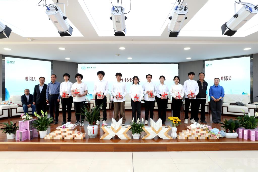 與會領導為相關部門、學生代表贈書。