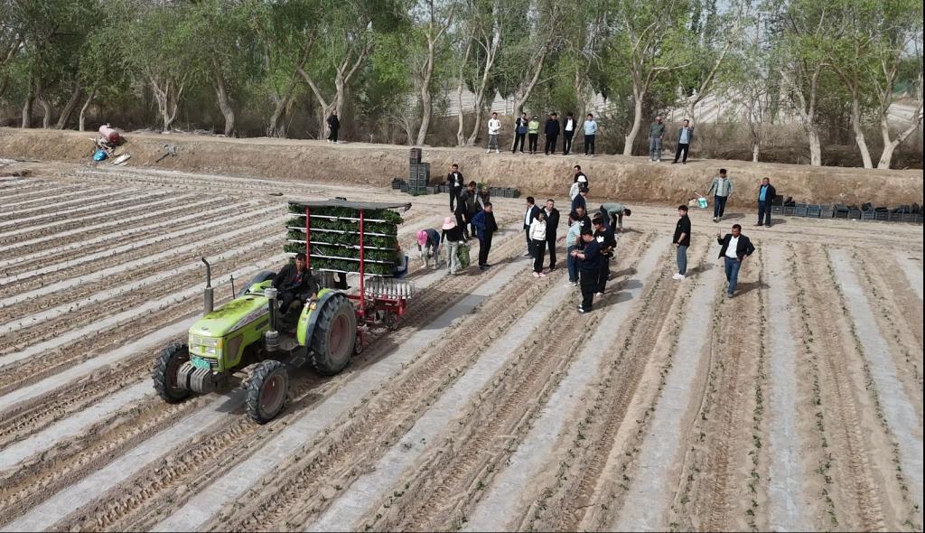 4月26日,黨委書記張愛萍,黨委副書記于軍,黨委常委、副校長林松濤,黨委常委、副校長湯智輝,黨委常委、紀委書記鄭麟,黨委常委、副校長謝建新,黨委常委、組織部部長張偉信一行,赴南疆產教融合現代農業實訓基地調研春播工作。