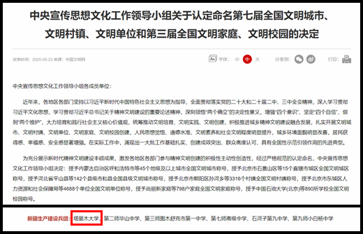 榮譽鼓舞人心,藍圖催人奮進。此次榮獲“全國文明校園”稱號,既是對學校長期以來堅持立德樹人、深化文明建設的充分肯定,更是對全體師生再接再厲、奮發有為的激勵。學校將以獲評“全國文明校園”為新的起點,繼續弘揚文明校風,深化育人內涵,打造更具示范性、引領性的校園文化品牌,為實現學校高質量內涵式發展作出新貢獻,奮力譜寫兵團特點南疆特色一流大學建設新篇章。
