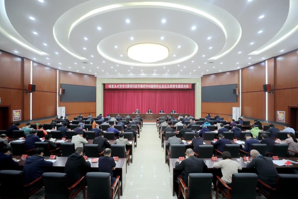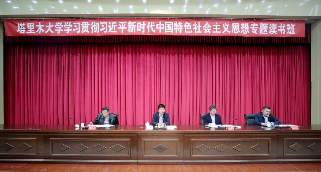 于軍宣讀了塔里木大學深入學習貫徹習近平新時代中國特色社會主義思想主題教育讀書班實施方案。(文/王星原 攝/張英 謝學成)