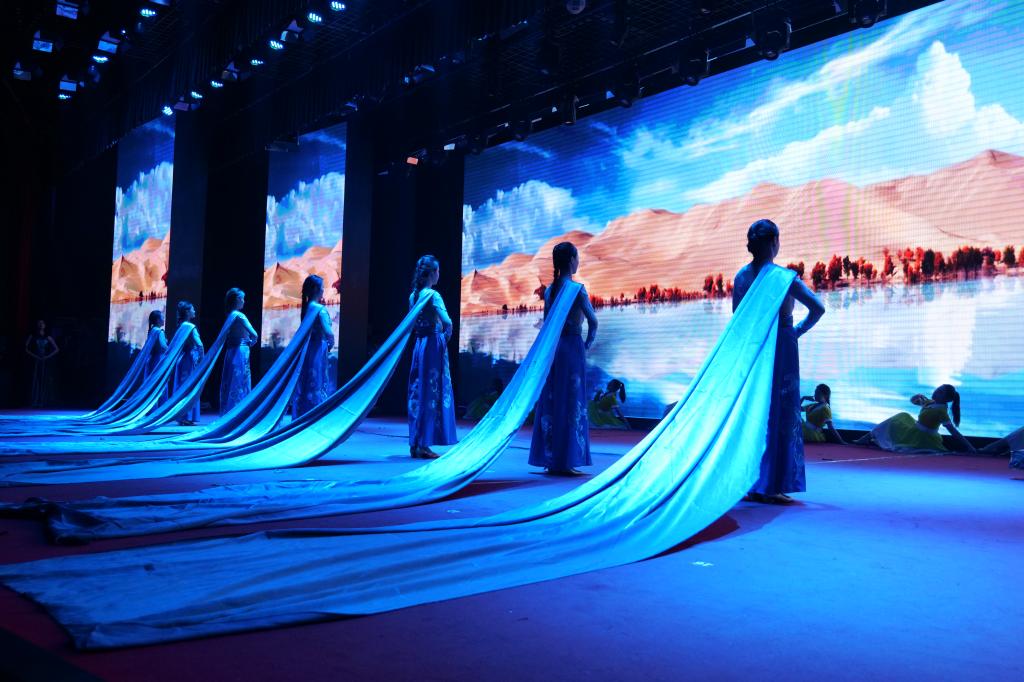 晚會在歌舞《這一片綠洲》中震撼開場,以感人的故事情節回顧了從荒蕪人煙到沙海綠洲的激情燃燒歲月,以充滿希望的綠意拉開整場晚會的序幕。