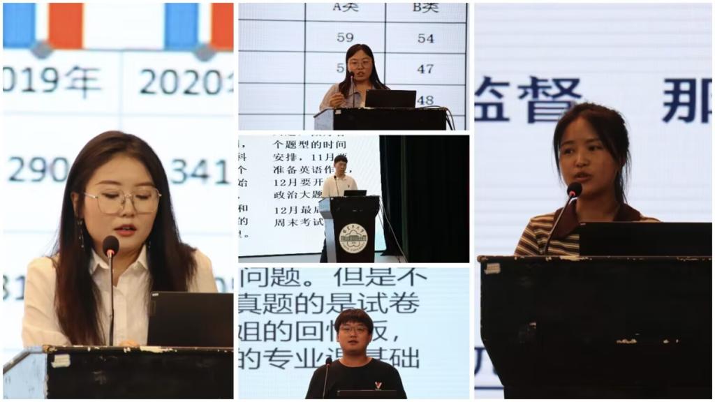 2019級考研擬錄取學生代表姬晨、楊鈺瑩、劉立學、李奕臻、楊維霞分享了備考、考研、復試、錄取的心路歷程。
