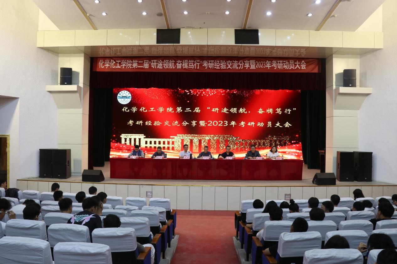 為深入開展學習貫徹習近平新時代中國特色社會主義思想主題教育,認真貫徹落實黨的二十大精神,5月15日晚,化學化工學院第二屆“研途領航,奮楫篤行”考研經驗交流分享暨2023年考研動員大會在大學生活動中心舉辦。學院黨委書記白紅進,黨委副書記、紀委書記馬祥,副院長殷雄,以及系主任、專業負責人、學科負責人、碩士生導師,2020級、2021級、2022級班主任及學生代表參加會議。會議由馬祥主持。